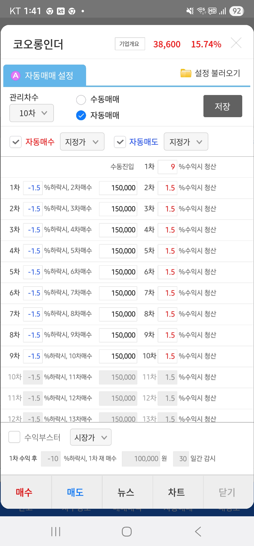익절 시점: 1차 매수자 기준 10% 구간인 42,000원 ~ 43,000원