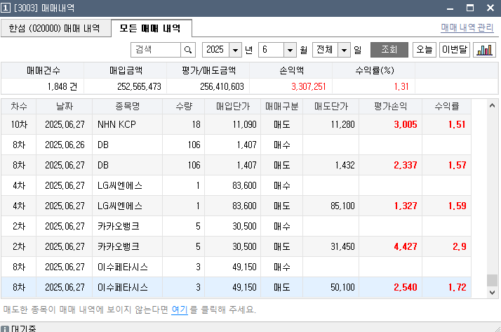 지금 이거 보이시죠? 더본코리아 손절 190만원 저기 보이는게 저금액이지 이번달,닷밀 이것도 손절해서 대략적인 손절금액이 250만원정도 됩니다.. 그럼 이번달 벌써 후딱 익절금액만 따지면 저반달보다 200만원 가량 이상 더 번거죠,,,