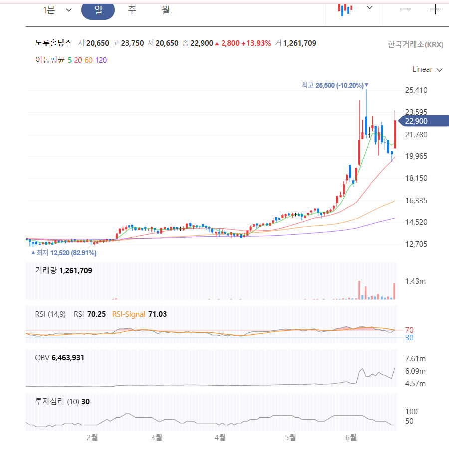 1. 단기 과열 조정 2. 21500원 부근 눌림 3.재반등후 전고점 돌파