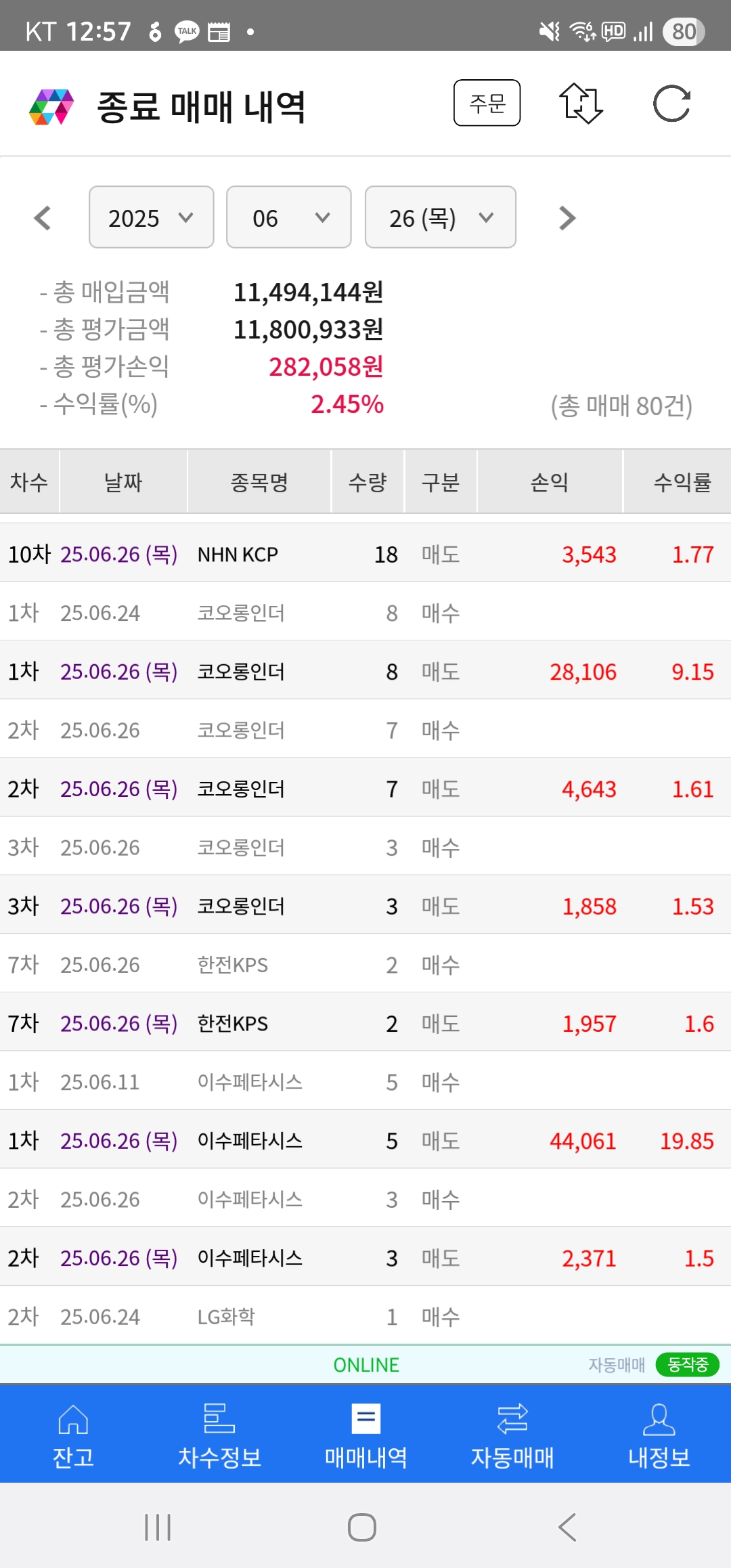 정확하게 이틀만에 매수하고 매도를 했네요...와~~~~~~~~~~~